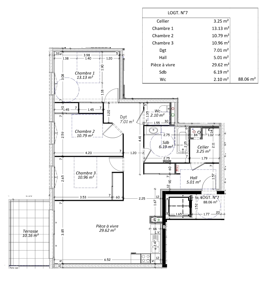 Appartement type 4 de 88 m² au 1er étage avec ascenseur.