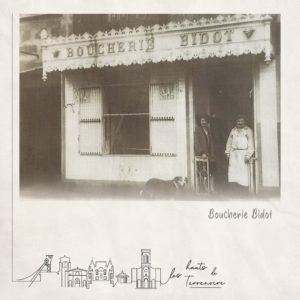 Il sโ€™agit de la devanture de la boucherie Bidot. Papi Marcel a travaillรฉ lร -bas pendant quelques temps.