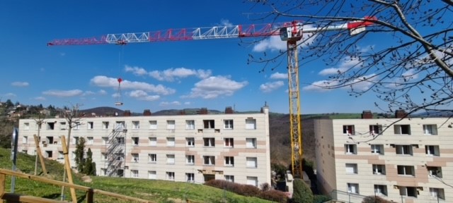 L’installation de la première grue marque le démarrage de notre opération de réhabilitation portant sur les résidences BRIANCON I et II sur la commune de SORBIERS.